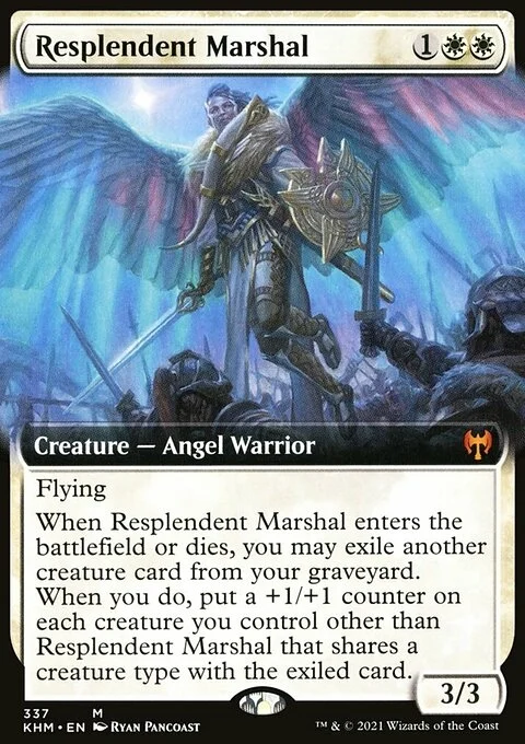 Flying When this creature enters or dies, you may exile another creature card from your graveyard. When you do, put a +1/+1 counter on each creature you control other than this creature that shares a creature type with the exiled card.