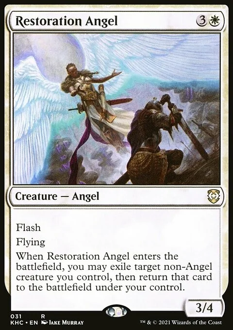 Flash Flying When this creature enters, you may exile target non-Angel creature you control, then return that card to the battlefield under your control.