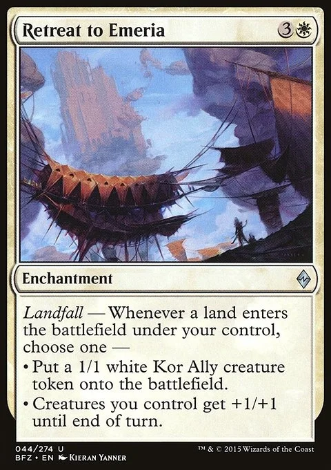 Landfall — Whenever a land enters the battlefield under your control, choose one — • Create a 1/1 white Kor Ally creature token. • Creatures you control get +1/+1 until end of turn.