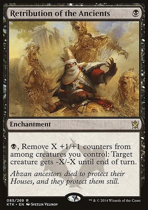 B, Remove X +1/+1 counters from among creatures you control: Target creature gets -X/-X until end of turn.