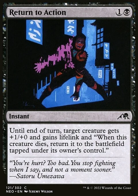 Until end of turn, target creature gets +1/+0 and gains lifelink and "When this creature dies, return it to the battlefield tapped under its owner's control."