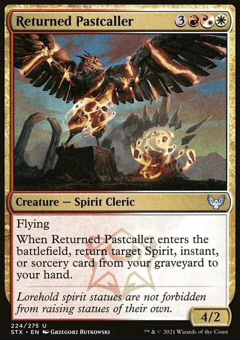 Flying When Returned Pastcaller enters the battlefield, return target Spirit, instant, or sorcery card from your graveyard to your hand.
