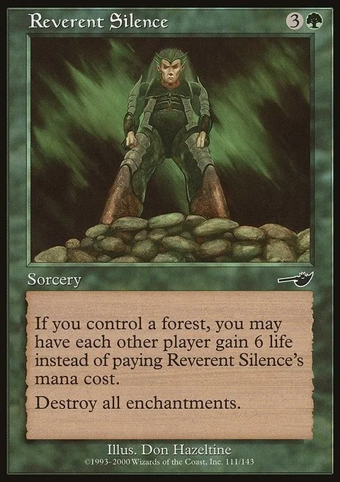 If you control a Forest, rather than pay this spell's mana cost, you may have each other player gain 6 life. Destroy all enchantments.