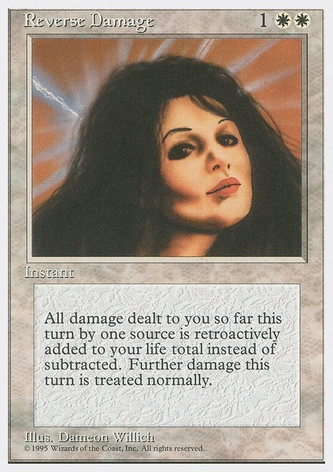 All damage dealt to you so far this turn by one source is retroactively added to your life total instead of subtracted. Further damage this turn is treated normally.