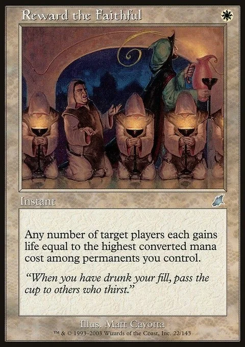 Any number of target players each gain life equal to the highest converted mana cost among permanents you control.