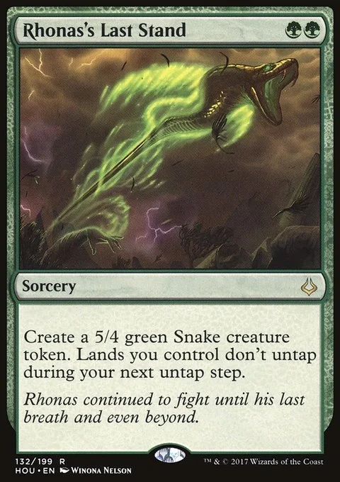 Create a 5/4 green Snake creature token. Lands you control don't untap during your next untap step.