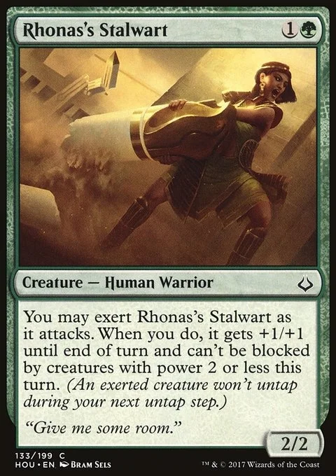 You may exert this creature as it attacks. When you do, it gets +1/+1 until end of turn and can't be blocked by creatures with power 2 or less this turn. (An exerted creature won't untap during your next untap step.)