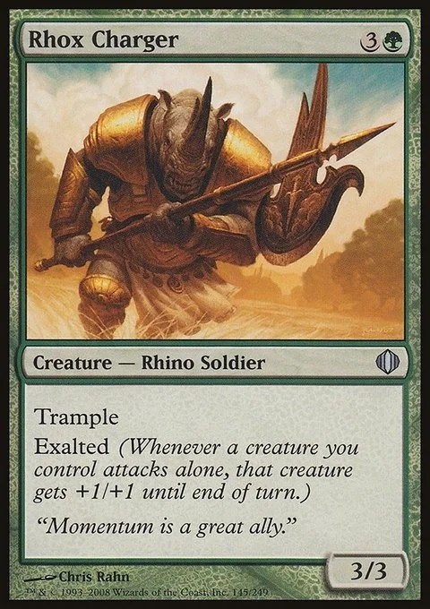 Trample Exalted (Whenever a creature you control attacks alone, that creature gets +1/+1 until end of turn.)