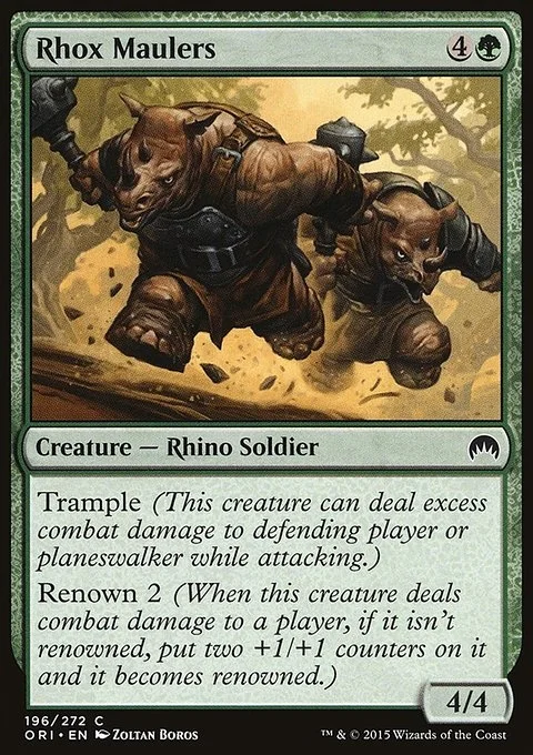 Trample (This creature can deal excess combat damage to the player or planeswalker it's attacking.) Renown 2 (When this creature deals combat damage to a player, if it isn't renowned, put two +1/+1 counters on it and it becomes renowned.)