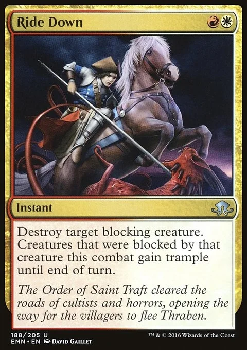 Destroy target blocking creature. Creatures that were blocked by that creature this combat gain trample until end of turn.