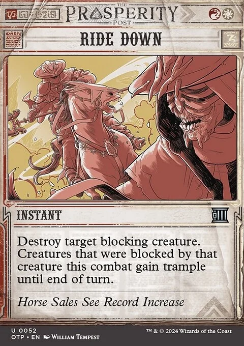 Destroy target blocking creature. Creatures that were blocked by that creature this combat gain trample until end of turn.