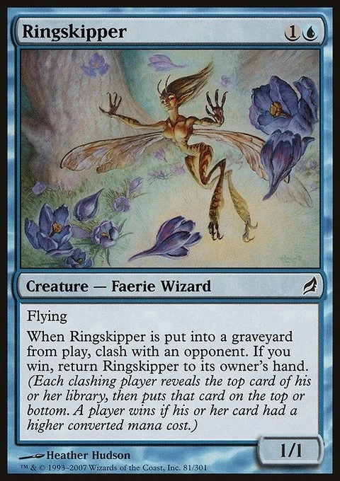 When Ringskipper dies, clash with an opponent. If you win, return Ringskipper to its owner's hand. (Each clashing player reveals the top card of their library, then puts that card on the top or bottom. A player wins if their card had a higher mana value.)
