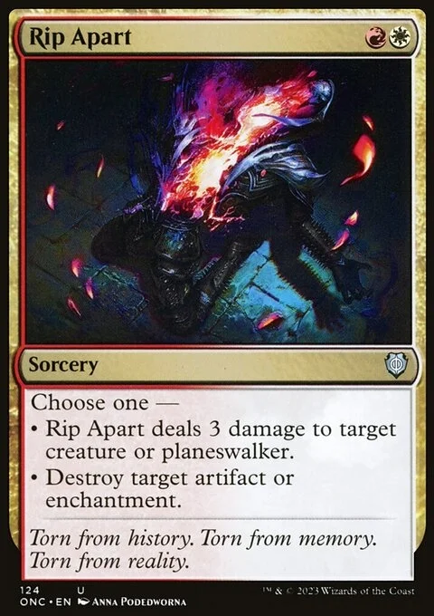 Choose one — • Rip Apart deals 3 damage to target creature or planeswalker. • Destroy target artifact or enchantment.