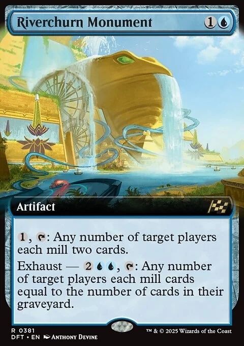 {1}, {T}: Any number of target players each mill two cards. (Each of them puts the top two cards of their library into their graveyard.) Exhaust — {2}{U}{U}, {T}: Any number of target players each mill cards equal to the number of cards in their graveyard. (Activate each exhaust ability only once.)