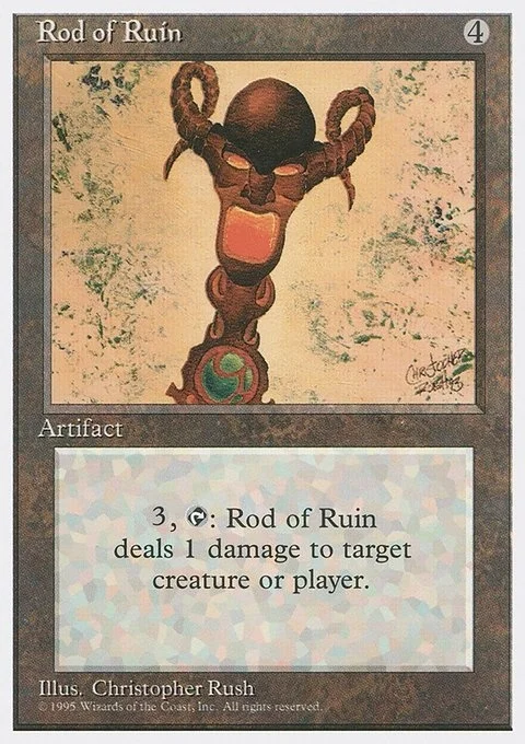 3, T: Rod of Ruin deals 1 damage to target creature or player.