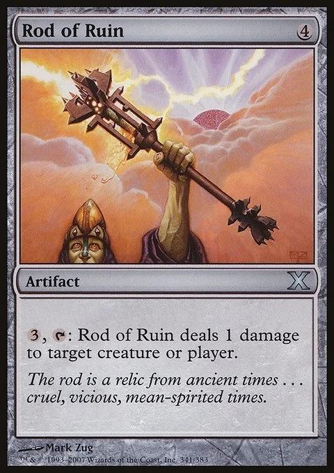{3}, {T}: Rod of Ruin deals 1 damage to any target.