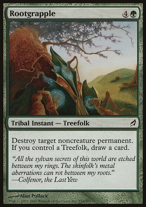 Destroy target noncreature permanent. If you control a Treefolk, draw a card.
