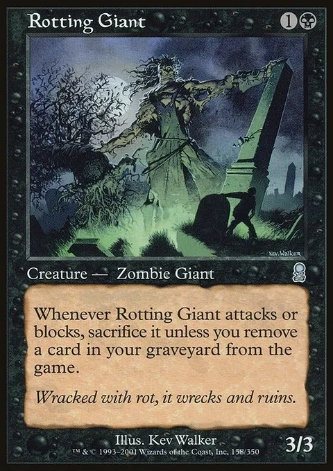 Whenever Rotting Giant attacks or blocks sacrifice it unless you remove a card in your graveyard from the game.