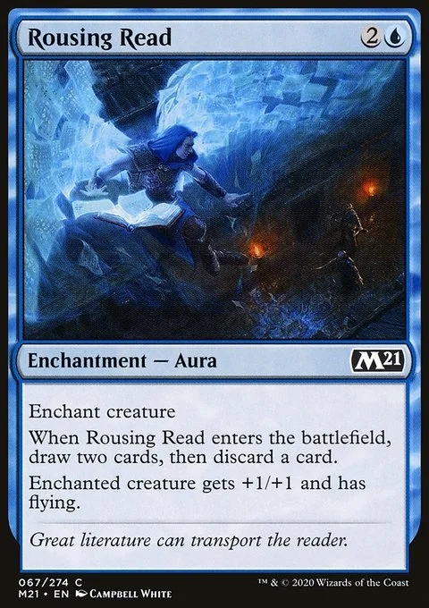 Enchant creature When this Aura enters, draw two cards, then discard a card. Enchanted creature gets +1/+1 and has flying.