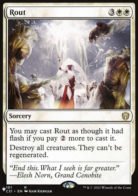 You may cast this spell as though it had flash if you pay {2} more to cast it. (You may cast it any time you could cast an instant.) Destroy all creatures. They can't be regenerated.