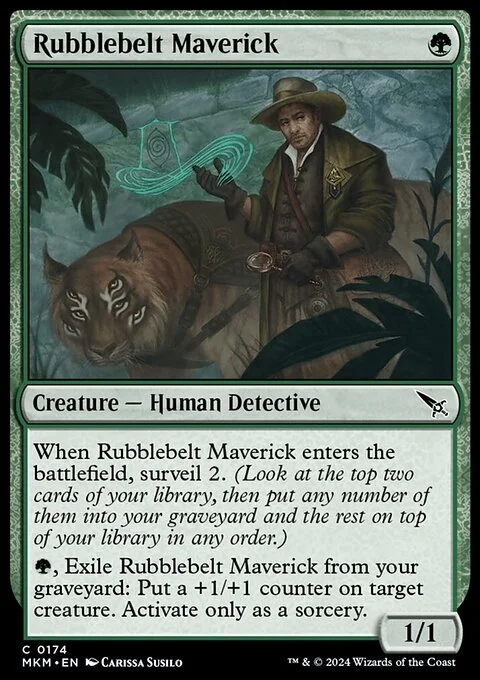 When this creature enters, surveil 2. (Look at the top two cards of your library, then put any number of them into your graveyard and the rest on top of your library in any order.)