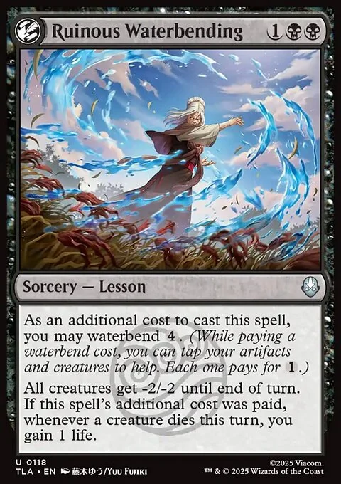 As an additional cost to cast this spell, you may waterbend {4}. (While paying a waterbend cost, you can tap your artifacts and creatures to help. Each one pays for {1}.)