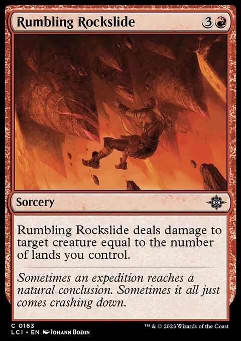 Rumbling Rockslide deals damage to target creature equal to the number of lands you control.