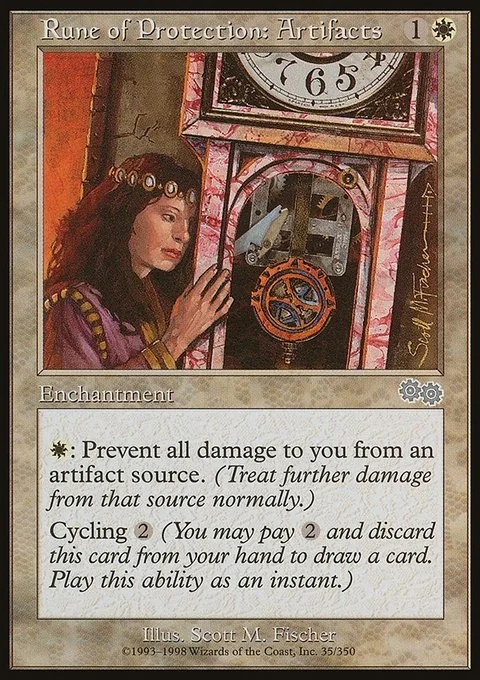 W: Prevent all damage to you from an artifact source. (Treat further damage from that source normally.) Cycling 2 (You may pay 2 and discard this card from your hand to draw a card. Play this ability as an instant.)