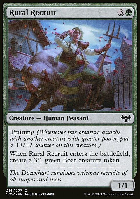 Training (Whenever this creature attacks with another creature with greater power, put a +1/+1 counter on this creature.) When this creature enters, create a 3/1 green Boar creature token.