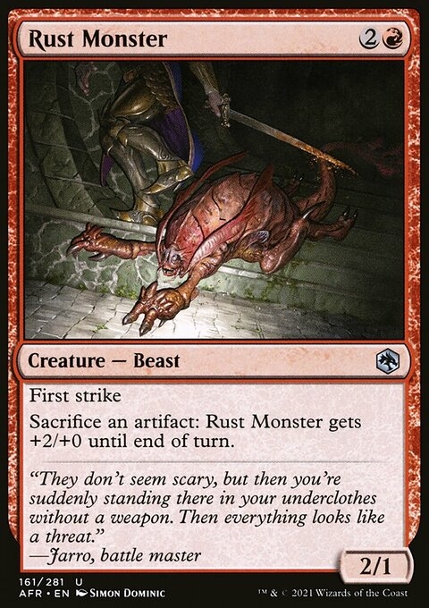 First strike Sacrifice an artifact: Rust Monster gets +2/+0 until end of turn.
