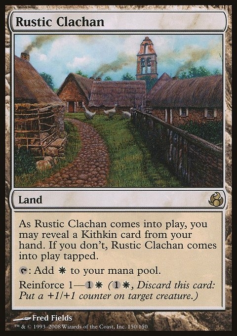 As Rustic Clachan comes into play, you may reveal a Kithkin card from your hand. If you don't, Rustic Clachan comes into play tapped.