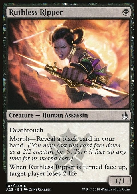 Deathtouch Morph—Reveal a black card in your hand. (You may cast this card face down as a 2/2 creature for {3}. Turn it face up any time for its morph cost.) When this creature is turned face up, target player loses 2 life.