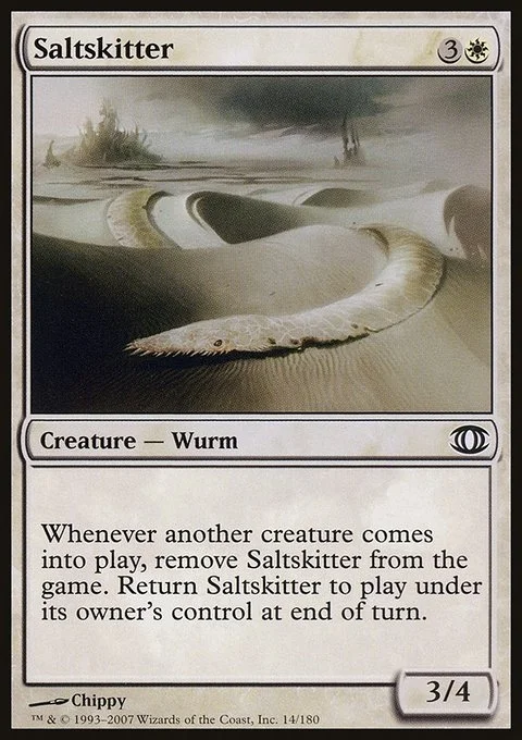 Whenever another creature enters, exile Saltskitter. Return Saltskitter to the battlefield under its owner's control at the beginning of the next end step.