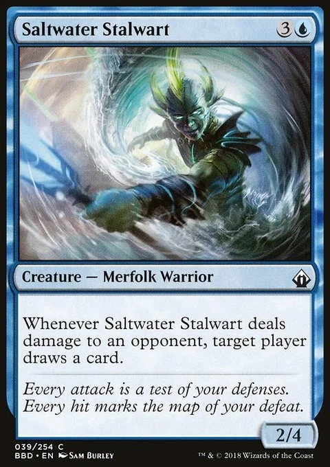 Whenever Saltwater Stalwart deals damage to an opponent, target player draws a card.