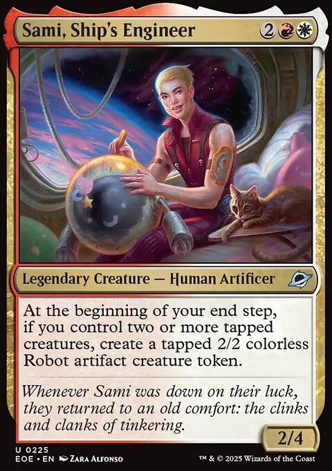 At the beginning of your end step, if you control two or more tapped creatures, create a tapped 2/2 colorless Robot artifact creature token.