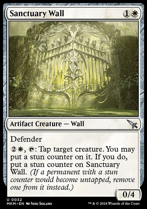 Defender {2}{W}, {T}: Tap target creature. You may put a stun counter on it. If you do, put a stun counter on Sanctuary Wall. (If a permanent with a stun counter would become untapped, remove one from it instead.)