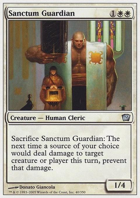 Sacrifice Sanctum Guardian: The next time a source of your choice would deal damage to target creature or player this turn, prevent that damage.