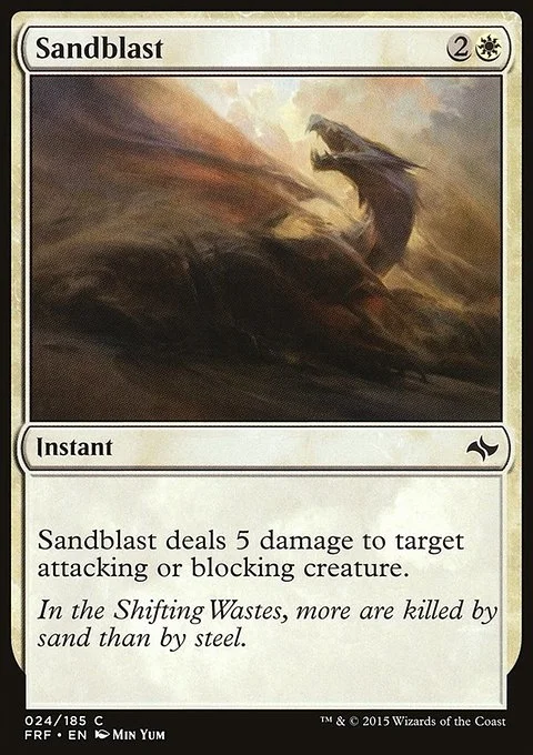 Sandblast deals 5 damage to target attacking or blocking creature.