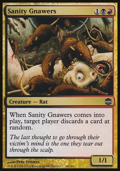 When Sanity Gnawers enters the battlefield, target player discards a card at random.