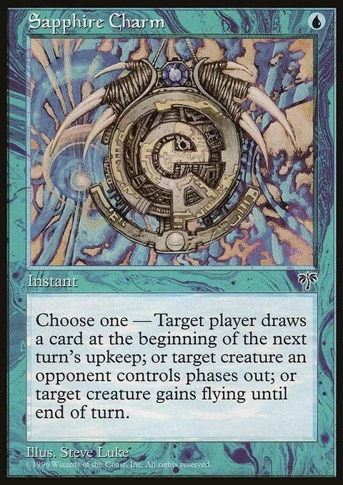 Choose one — • Target player draws a card at the beginning of the next turn's upkeep. • Target creature gains flying until end of turn. • Target creature an opponent controls phases out. (While it's phased out, it's treated as though it doesn't exist. It phases in before its controller untaps during their next untap step.)