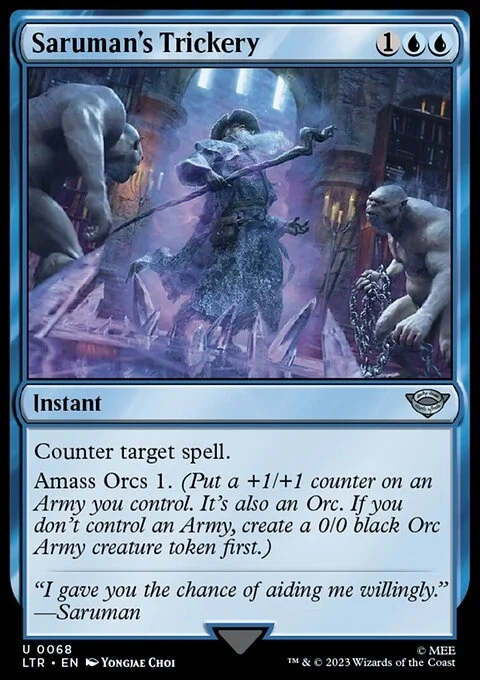 Counter target spell. Amass Orcs 1. (Put a +1/+1 counter on an Army you control. It's also an Orc. If you don't control an Army, create a 0/0 black Orc Army creature token first.)