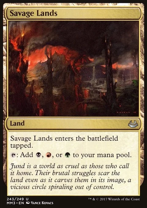 Savage Lands enters the battlefield tapped. {T}: Add {B}, {R}, or {G}.