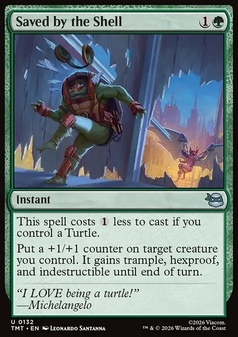 This spell costs {1} less to cast if you control a Turtle. Put a +1/+1 counter on target creature you control. It gains trample, hexproof, and indestructible until end of turn.