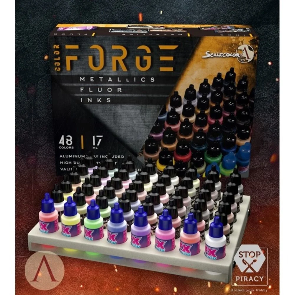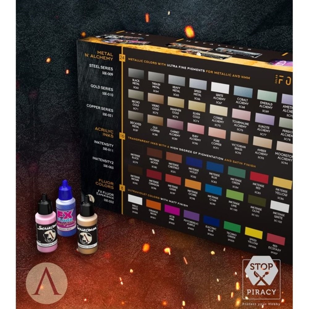 Scale75 Scalecolor Collection with Metallics, Fluor and Inks. Contains 48 different 17mL acrylic colours and an aluminium tray for the painting table.
