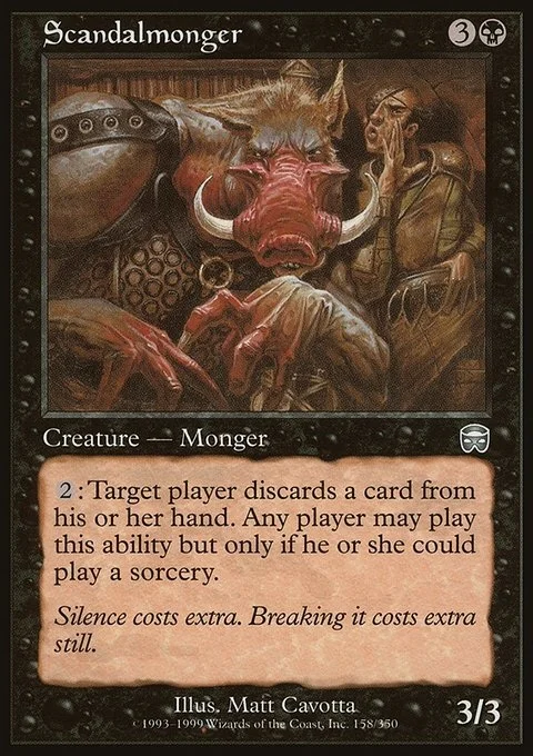 {2}: Target player discards a card. Any player may activate this ability but only as a sorcery.