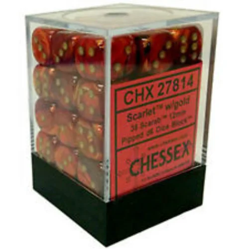 Scarlet with Gold Scarab 12mm d6 Dice Block Chessex (36 Dice) CHX27814
