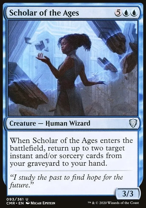 When Scholar of the Ages enters the battlefield, return up to two target instant and/or sorcery cards from your graveyard to your hand.