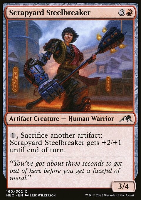 {1}, Sacrifice another artifact: This creature gets +2/+1 until end of turn.