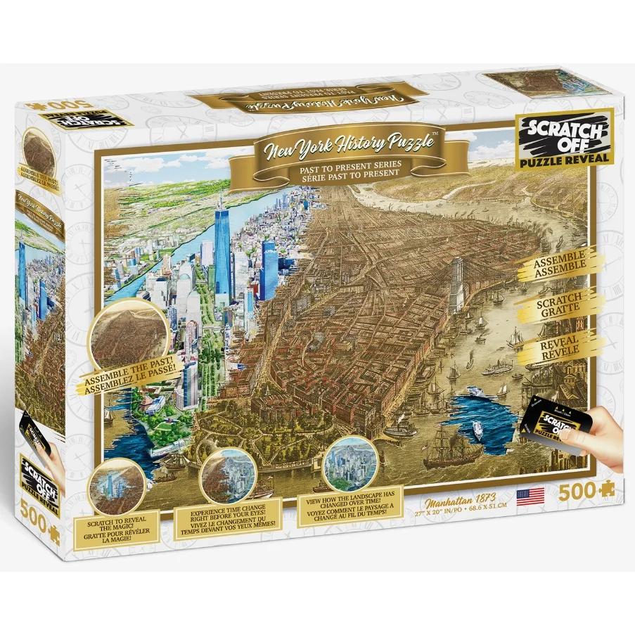 4D now introduces you Scratch-Off Puzzles, the greatest innovation to the jigsaw puzzle in over a decade! This patented puzzle is genius. You first assemble the puzzle, then you scratch the top layer to either mark, alter, or reveal a new image! See the magic as the image changes before your eyes. When complete, you can turn over the puzzle to retain the original puzzle art you assembled. This extra activity of fun brings a whole new dimension and education value! Product measures 70cm x 50cm, consists of 500PCS and comes with a Scratch Tooland a Scratch Brush