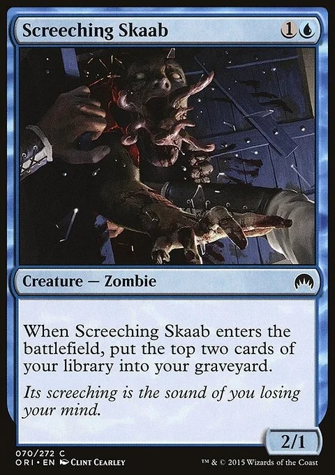 When Screeching Skaab enters the battlefield, put the top two cards of your library into your graveyard.